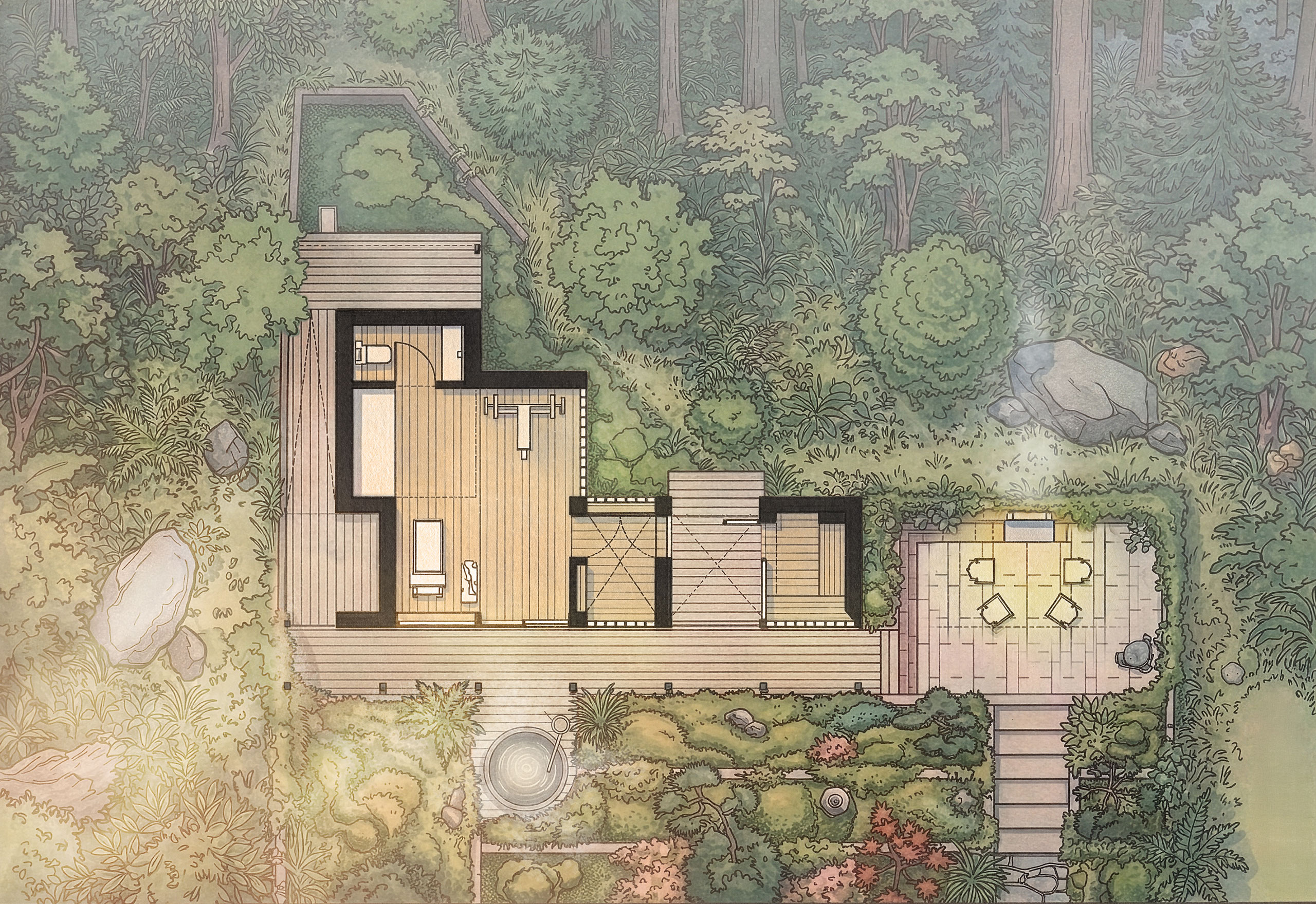 Conceptual proposed plan view, inspired by the drawings of Hiroshi Yoshida