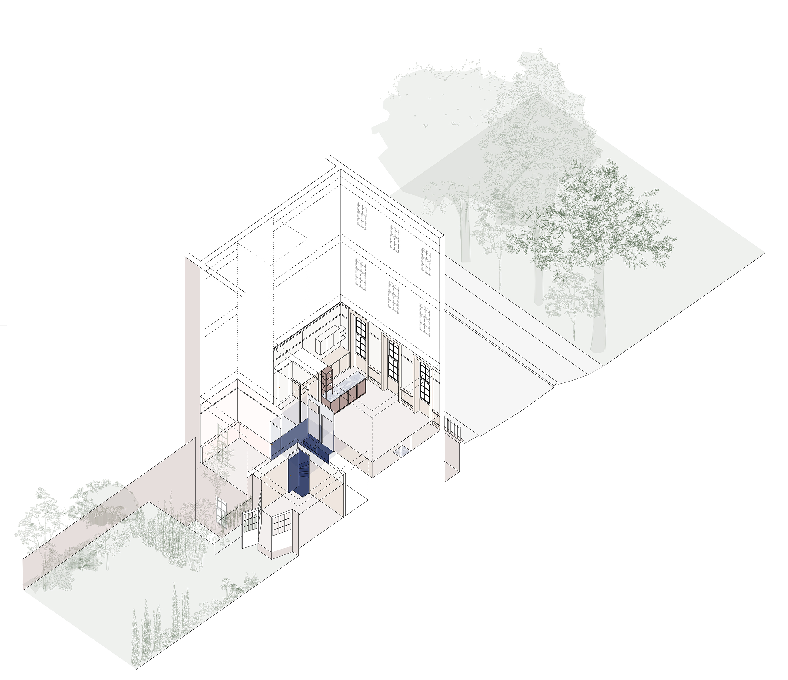 Patalab’s refurbishment addresses this separation whilst responding to the grade II listing and working within constraints such as structure and budget. We therefore employed small interventions and explored surface treatment to improve the flat’s cohesion and uncover its verdant potential.