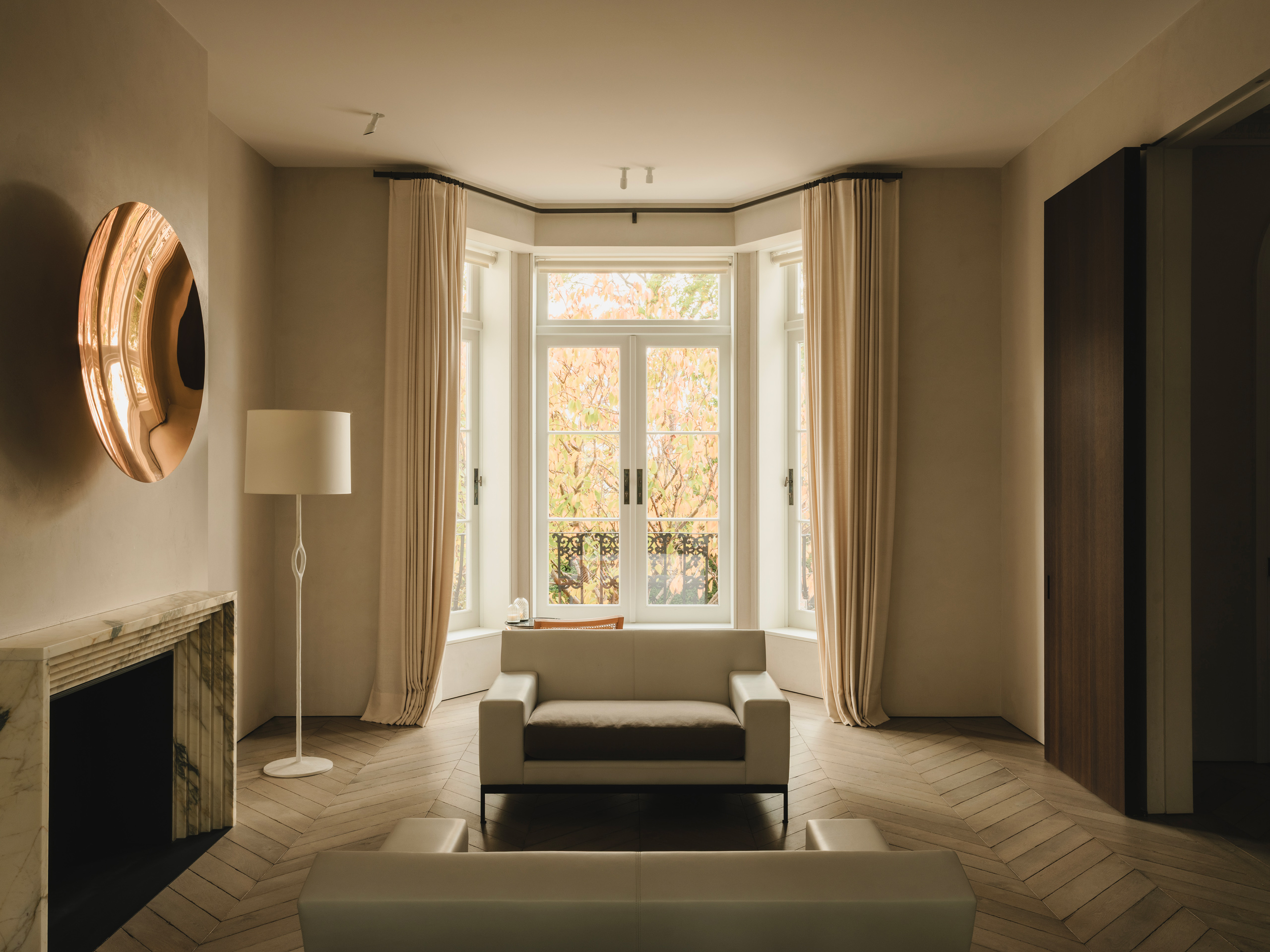 In collaboration with Marc Merckx, this extensive refurbishment centres on a bespoke sculptural staircase and a pared-back material palette. Meticulous structural interventions and refined detailing invite a soft play of natural light, creating a curated sanctuary for art and modern family life.