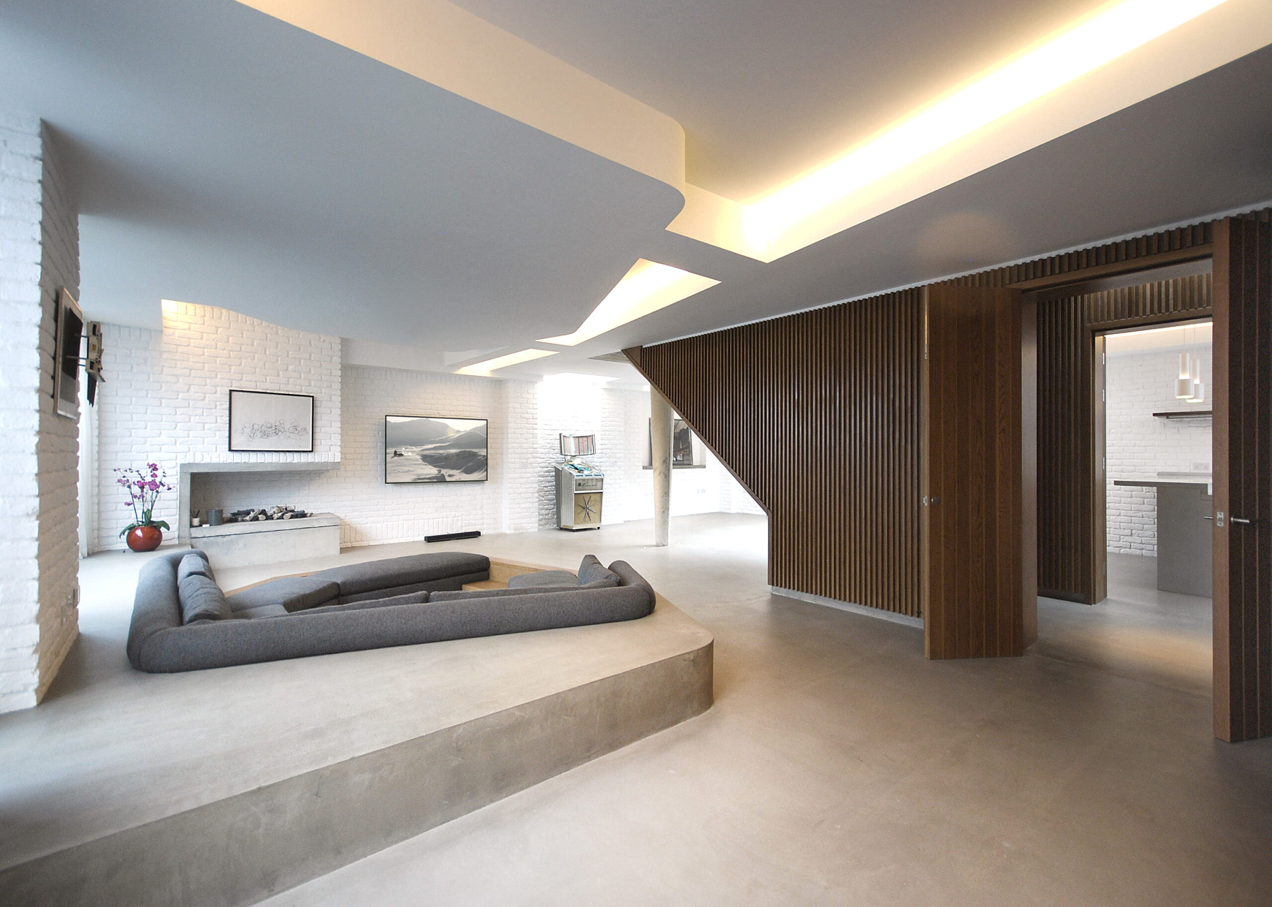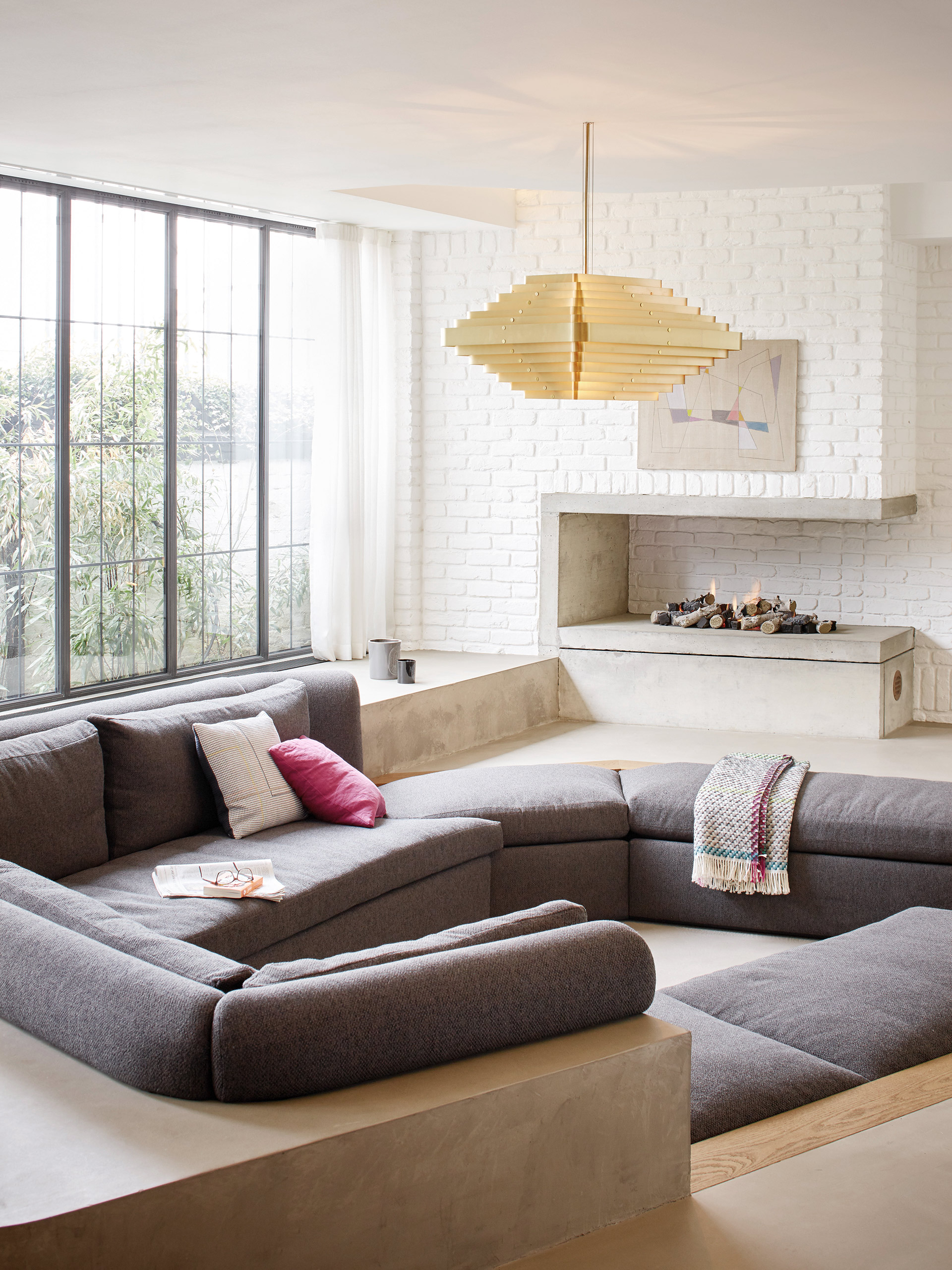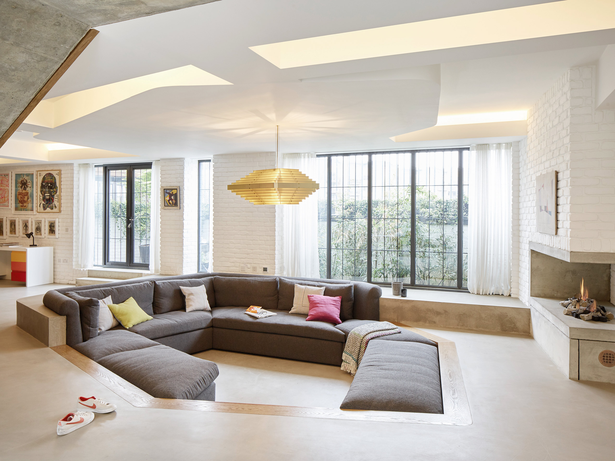 Embracing bespoke sunken seating area, finished with complementary bespoke brass chandelier